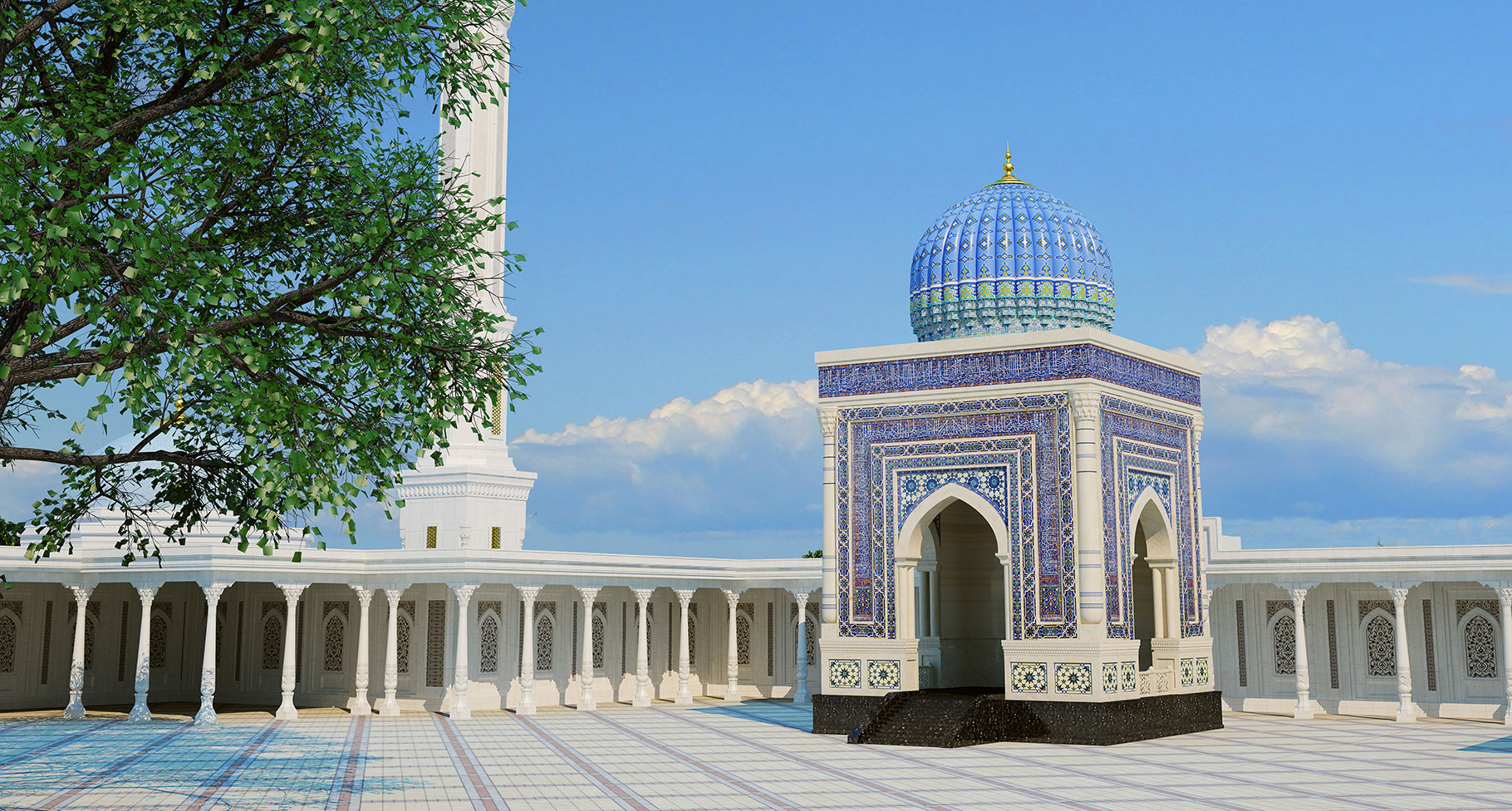 The grave of Abu Abdullah Muhammad ibn Ismail al-Bukhari is located in the village of Khartang, 25 kilometers from Samarkand. The large-scale project contemplates a complete reconstruction of a land plot with an area of 48k square meters. It includes a new large mosque with a capacity of 9,000 believers, as well as beautiful landscaped gardens with an area of 4,400 square meters.