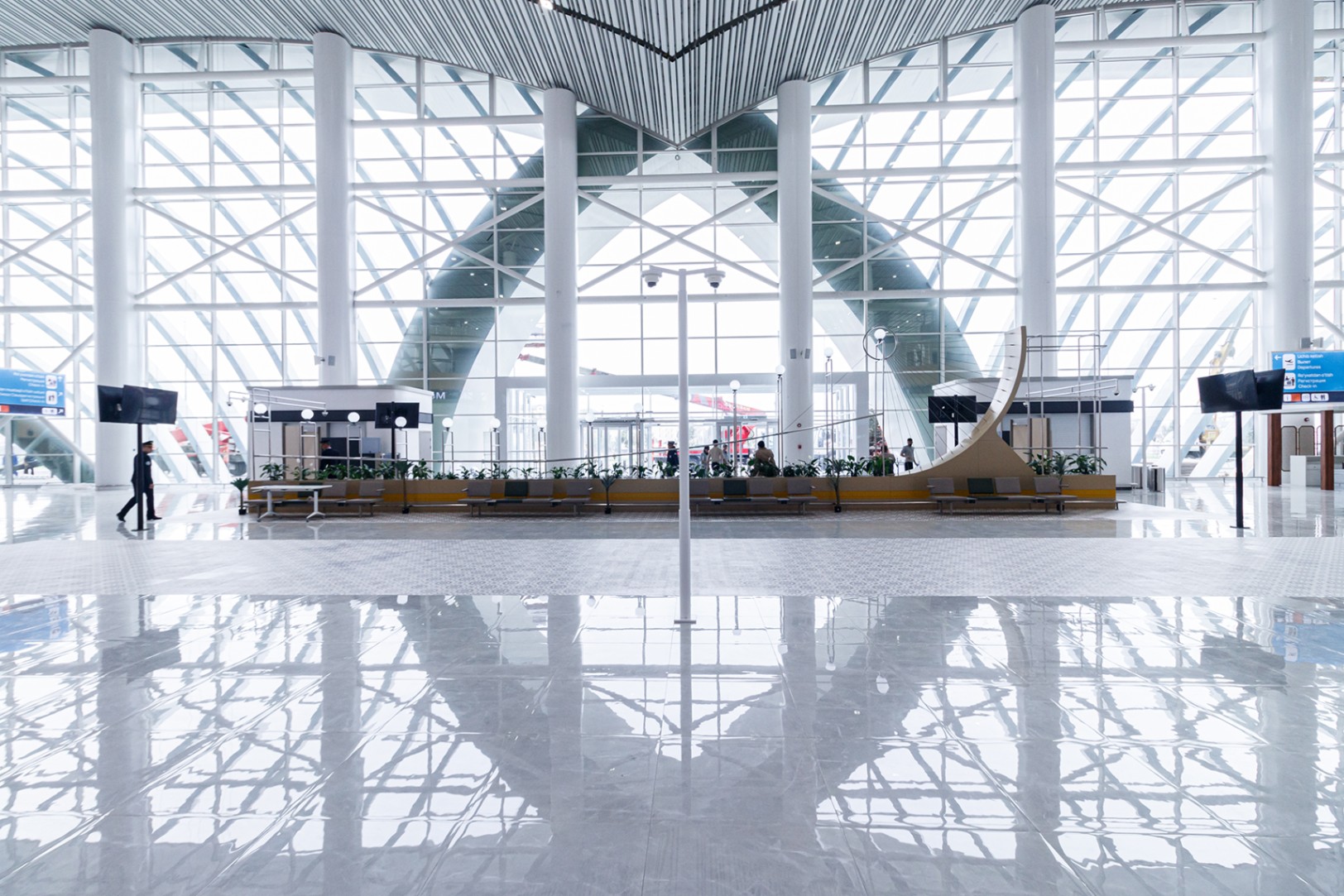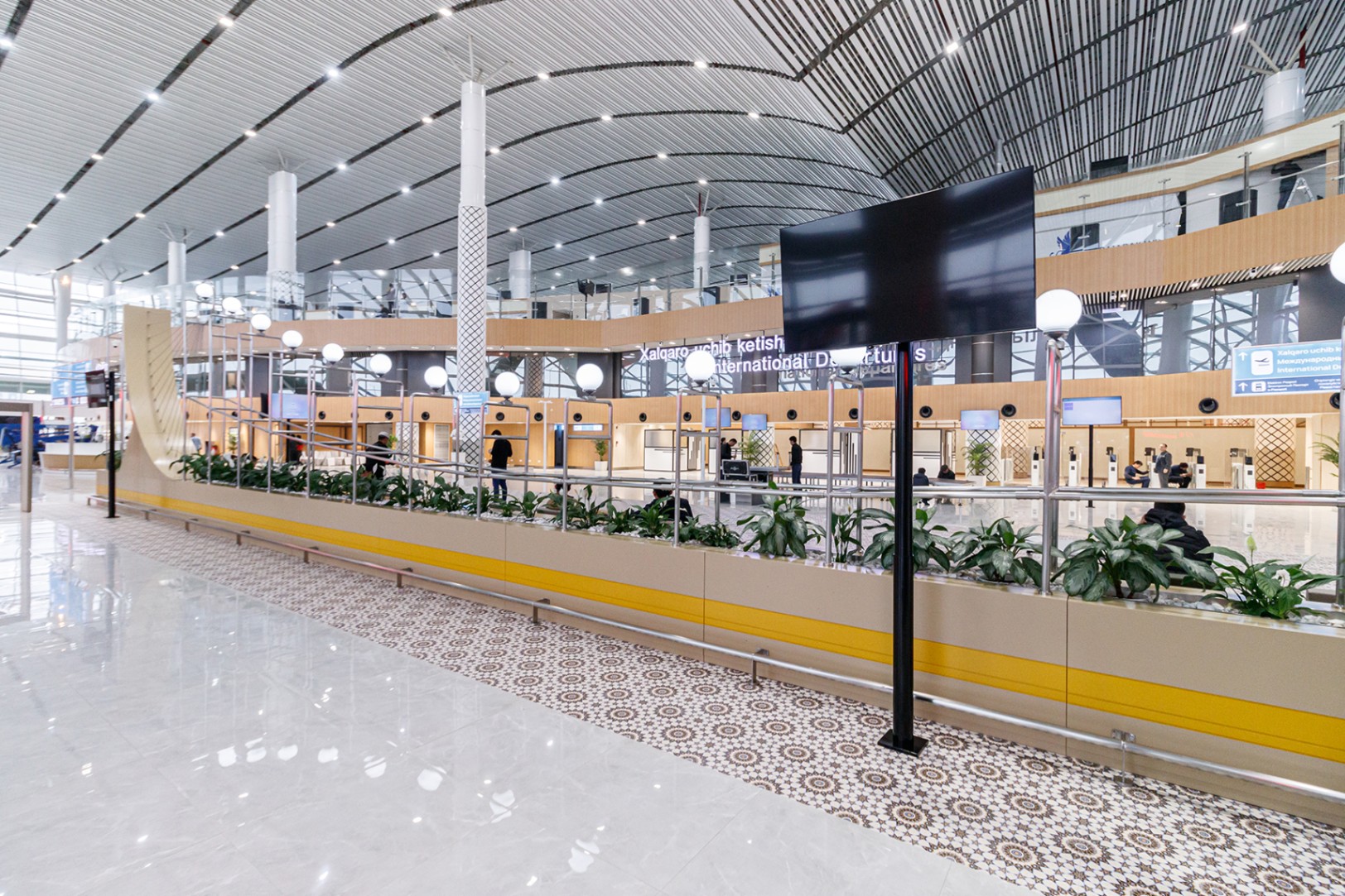 In 2022, a new terminal capable of serving 1,200 passengers per hour (compared to 400 passengers before the renewal) was put into operation. The new terminal design resembles an open book. Constellations depicted by designers on its roof represent the contribution made by the outstanding astronomer Mirzo Ulugbek to the development of science and the entire humankind.