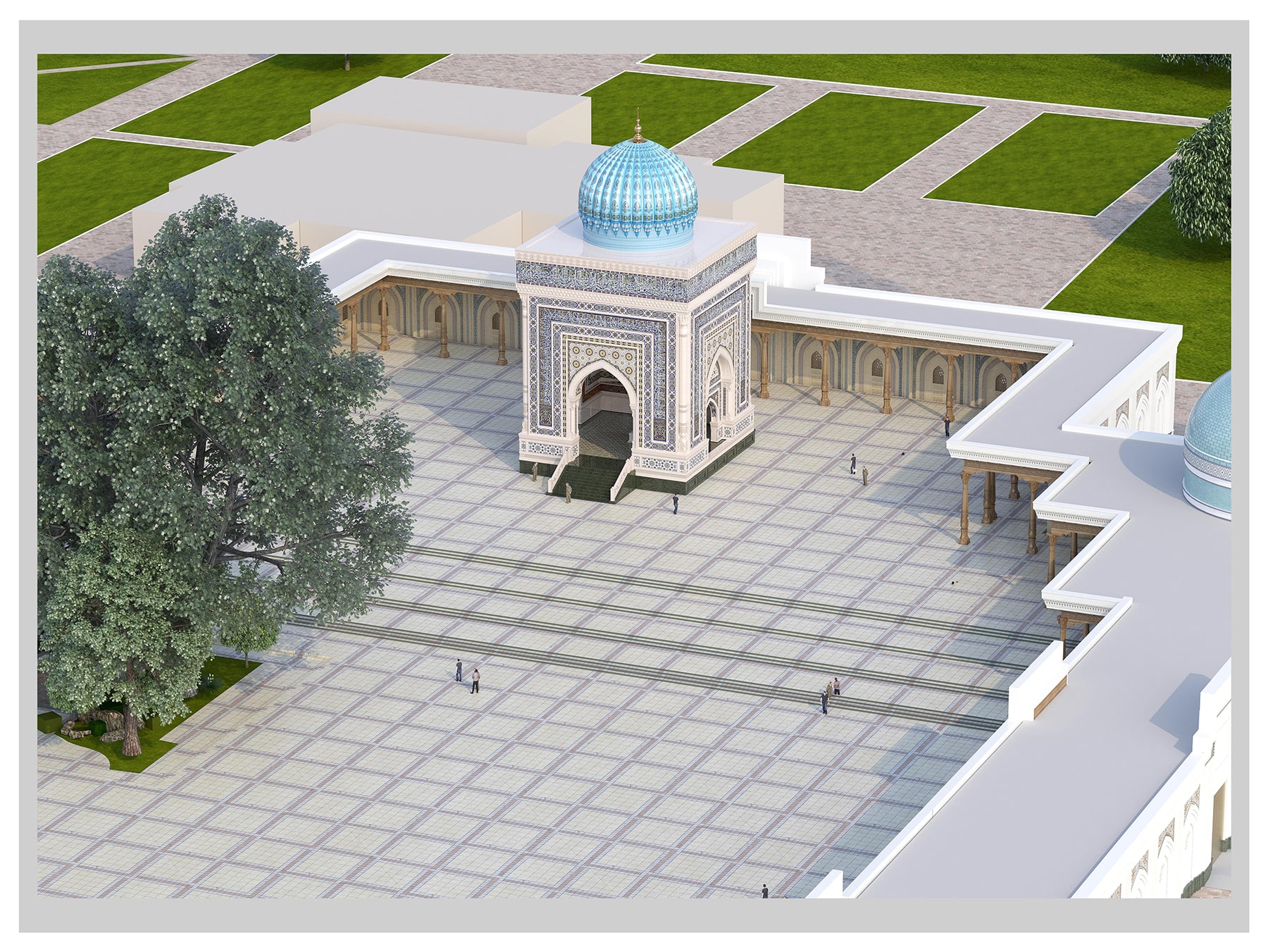 The grave of Abu Abdullah Muhammad ibn Ismail al-Bukhari is located in the village of Khartang, 25 kilometers from Samarkand. The large-scale project contemplates a complete reconstruction of a land plot with an area of 48k square meters. It includes a new large mosque with a capacity of 9,000 believers, as well as beautiful landscaped gardens with an area of 4,400 square meters.