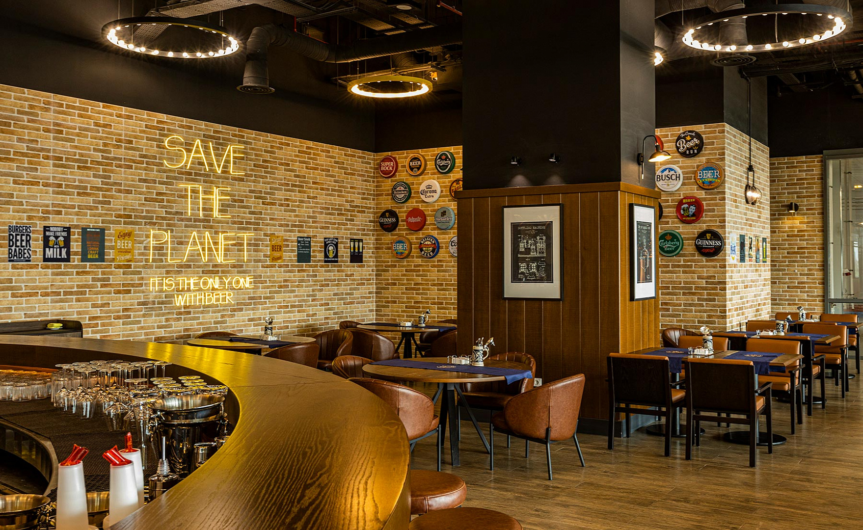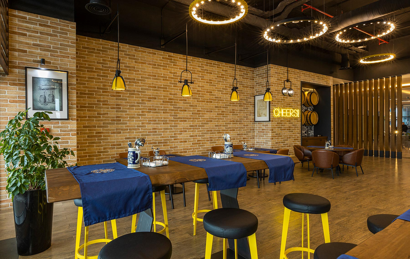 The Khmelnov Beer Restaurant is a restaurant with its own brewery, which works as a pub. The menu includes specialties from traditionally “beer” countries: Germany, Austria, Great Britain and the Czech Republic.